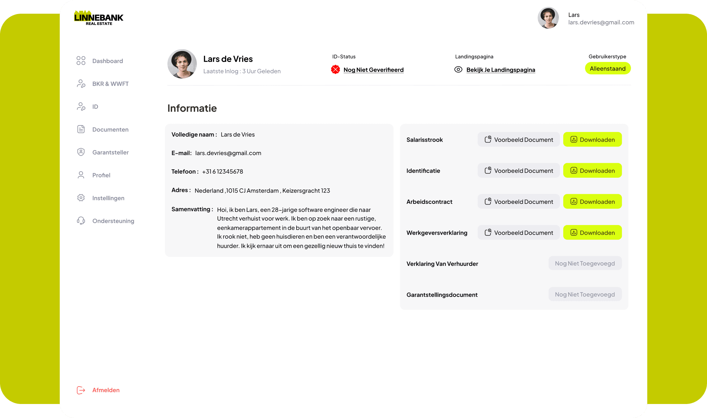 Om jouw dossier compleet te maken en de echtheid van jouw profiel te verifiëren, voeren wij een ID-, BKR- en WWFT-controle uit.